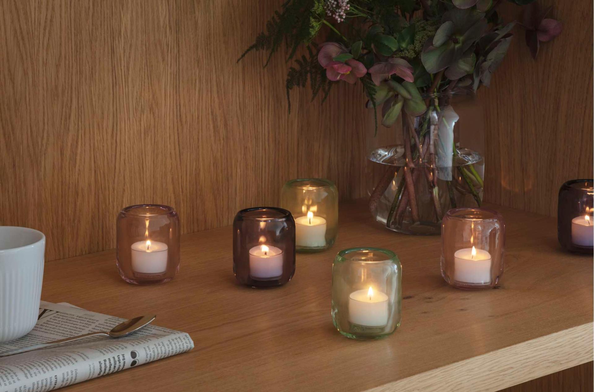 Crea un'atmosfera di "hygge" a lume di candela con questi eleganti portacandele in vetro colorato. Usa i portacandele singolarmente o in coppia e goditi la bellezza delle fiamme riflesse nel vetro. I portacandele sono robusti, progettati per l'uso quotidiano e lavabili in lavastoviglie.