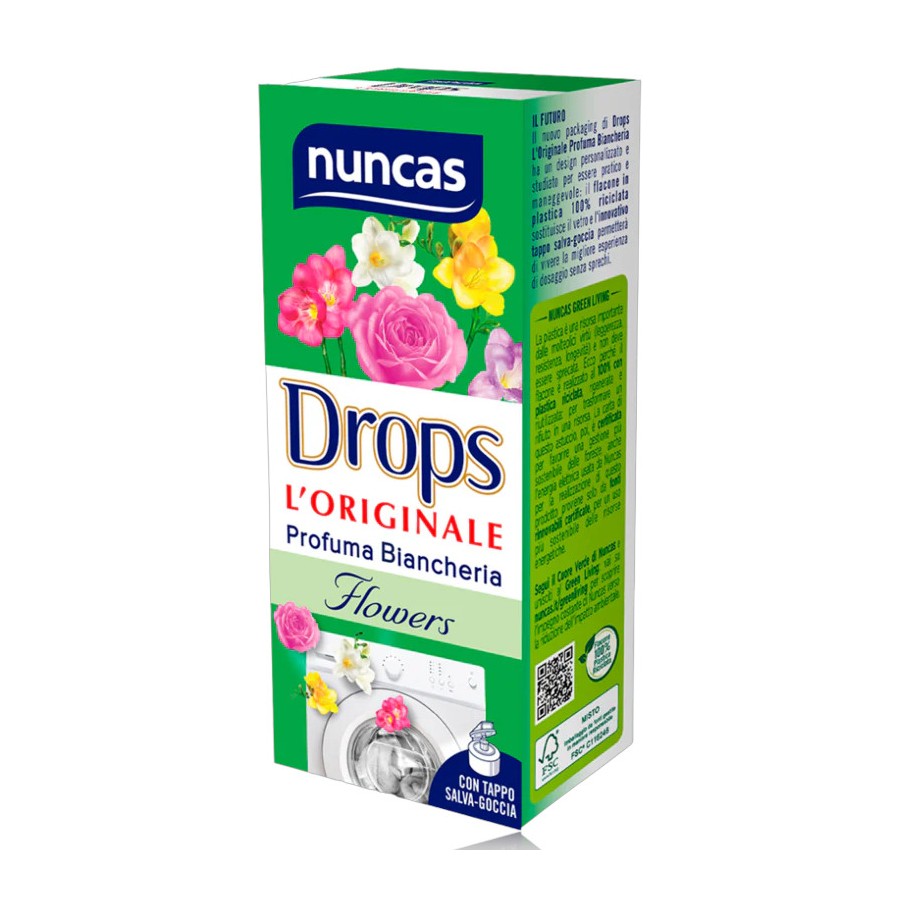 Bastano poche gocce di profumo Drops Profumabiancheria Flowers all'ultimo risciacquo per donare a tutto il bucato un profumo sottile e raffinato che permane a lungo sui tessuti donando una piacevole sensazione di benessere. Queste fragranze Nuncas sono particolarmente durevoli e persistono sul bucato.