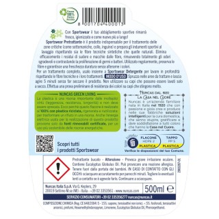 Sportswear Pretrattante è l'innovativo additivo pretrattante studiato per igienizzare gli indumenti sportivi in fibre sintetiche e naturali indossati a diretto contatto con la pelle. Spruzzato direttamente su maglie e pantaloncini prima del lavaggio, scioglie il sudore, ne facilita la immediata e totale rimozione degli odori sgradevoli anche persistenti. I suoi principi attivi si fissano alle fibre e garantiscono un'azione rinfrescante a lunga durata, anche durante il successivo utilizzo. Rispetta le fibre più delicate e non altera i colori.
