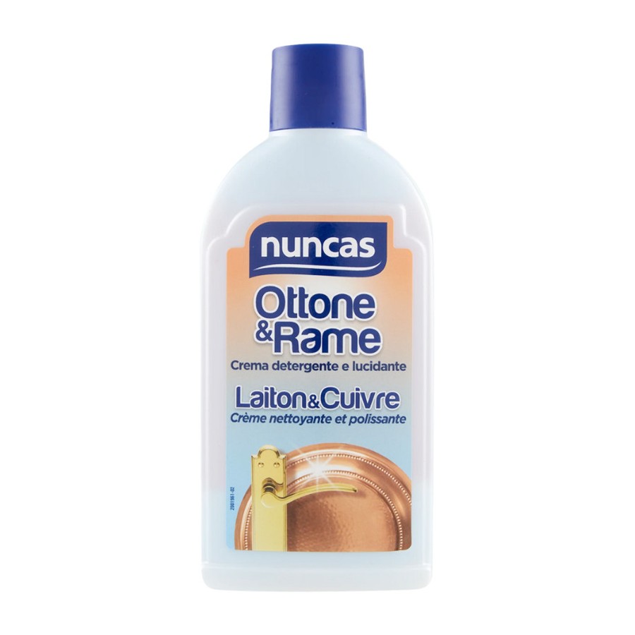 Eleganti e delicati, ottone e rame sono due metalli che donano alla casa un tocco di stile unico. La loro naturale propensione al viraggio di colore (dal rosa all'arancio, sino al verde) rende necessaria una routine di pulizia specifica che deve essere fatta per forza con un prodotto acido unito ad un'azione meccanica. Ecco perché Nuncas ha studiato due prodotti dedicati: uno per la pulizia straordinaria e l'altro per quella quotidiana. Ottone & Rame è una crema per la lucidatura di tutti gli oggetti e le superfici in ottone, rame e bronzo. La sua formulazione contiene una sottilissima polvere abrasiva che rimuove dalla superficie impronte e ingiallimento dovuto al contatto con cibi e bevande, senza graffiare. La sua formula arricchita di oli minerali antistatici protegge dalla polvere e dai depositi di calcare, donando agli oggetti l'originale lucidità e brillantezza.
