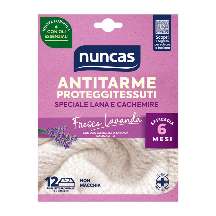 Nuncas Antitarme Proteggitessuti 12 Foglietti Fresco Lavanda Efficace per 6 Mesi