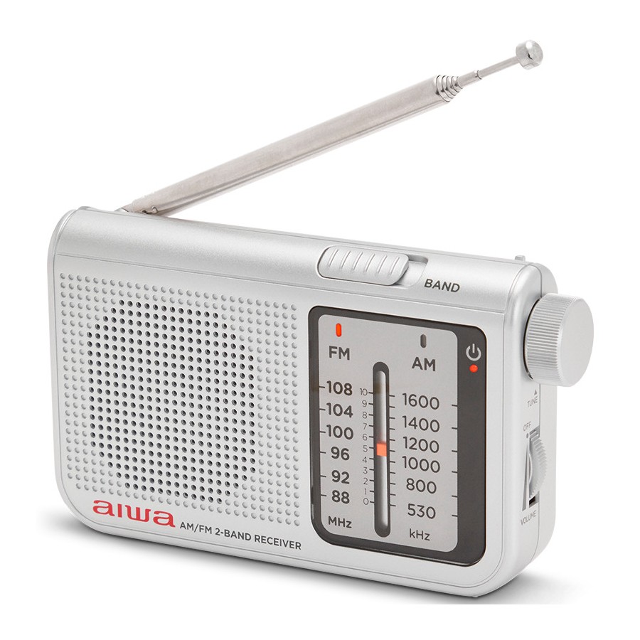 Aiwa RS-55/SL Silver Radio FM AM Portatile Altoparlante Cuffie Stereo Batterie 2x AA