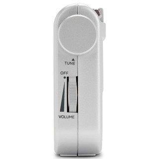 Radio portatile 2 bande: AM/FM. Altoparlante, Presa cuffia. Auricolari inclusi. Batterie: 2x AA incluse. Dimensioni (LxAxP) 12,6 x 7,5 x 2,6 cm