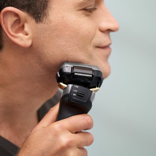 Sistema di taglio a 5 lame. Testina Multi-Flex 16D. Testina flessibile multidirezionale per seguire le linee del viso. Lame interne super affilate con tecnologia Nano a 30°, Motore lineare 14.000 giri al minuto. Sensore Barba. Tagliabasette a pop-up. Wet/Dry. Ricaricabile 1 ora, Autonomia di 50 minuti.
