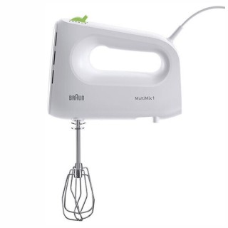 Sbattitore Elettrico MultiMix 1, 450W, con tecnologia FastMix per miscelare più velocemente, 4 velocità di lavorazione + turbo, dotato di 2 fruste inox. Accessori lavabili in lavastoviglie.