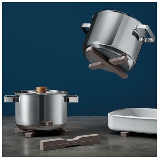 Il sottopentola può essere posizionato incrociato sotto pentole e piccoli piatti, ma diviso in due per piatti più grandi, ad esempio teglie per arrosti. Grazie ai magneti integrati, il sottopentola rimane con la casseruola mentre viene spostato attorno al tavolo. Dopo l'uso, si ripiega ordinatamente nel cassetto.