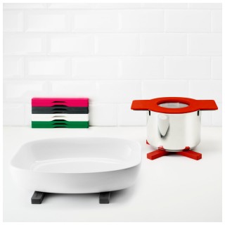 Il sottopentola ha magneti incorporati ed è realizzato in nylon rivestito di silicone. È lavabile in lavastoviglie.