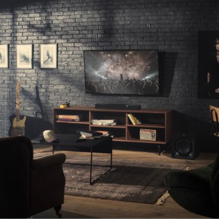 Questa piccola ma potente soundbar a 2.1 canali ha un peso superiore al suo peso, con due driver in alluminio da 2,25" finemente regolati dagli esperti di acustica Klipsch e due subwoofer integrati da 4" per bassi di prima categoria. Non è richiesto alcun subwoofer.