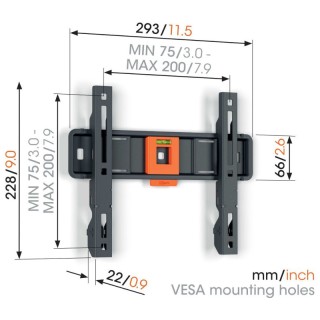 Supporto da Parete Piatto per schermi 19" - 50" / max 30 Kg - VESA min 75 x 75 mm / max 200 x 200 mm - Distanza dalla parete 22 mm