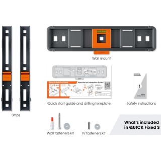 I supporti a parete per TV QUICK sono progettati per rendere il montaggio a parete del televisore facile e veloce. L'installazione di un supporto a parete per TV QUICK Fixed non richiede più di 20 minuti. Completa l'installazione in tre semplici passaggi, grazie al sistema unico EasyFIX™.