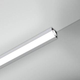 Profilo angolare in alluminio per strisce LED. Assicura un'installazione professionale e una distribuzione uniforme della luce. Il kit include una cover bianca opale e accessori di montaggio. Lunghezza 200 cm.