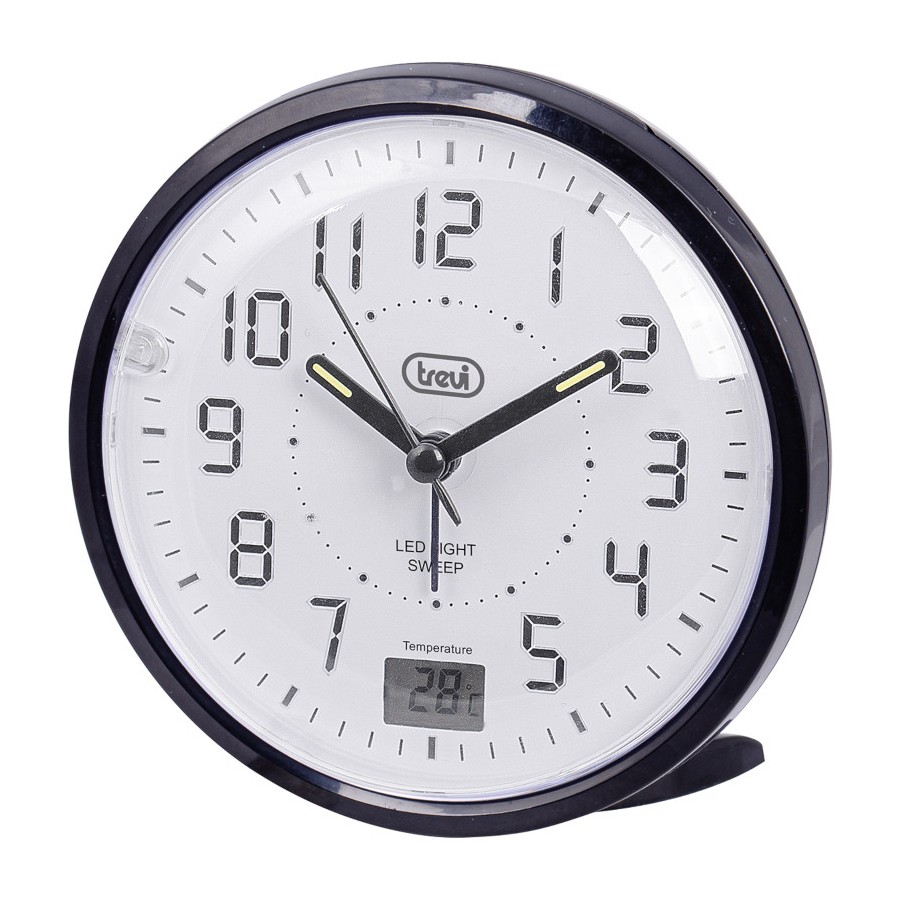 Trevi SL3P27 Nero Orologio Sveglia Lancette Movimento Silenzioso Suoneria Elettronica Luce Temperatura