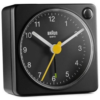 La classica sveglia analogica da viaggio BC02XB è caratterizzata da un quadrante di facile lettura e dall'iconica lancetta dei secondi gialla, diventata sinonimo della pluripremiata storia del design Braun.
