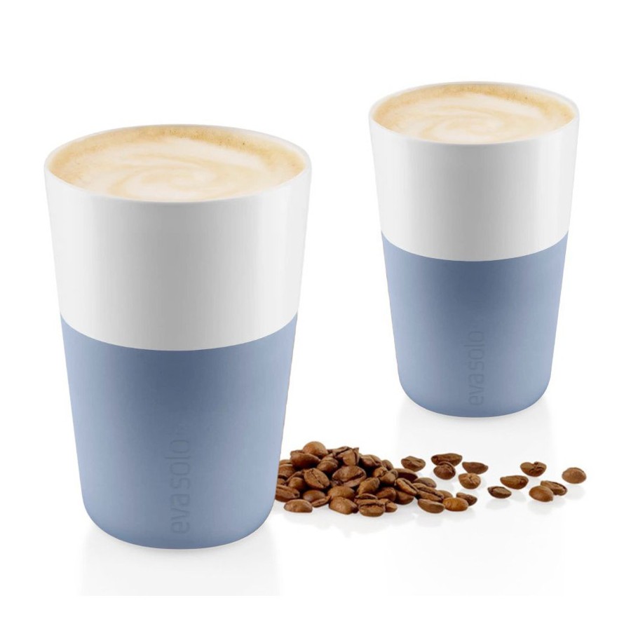 Eva Solo Bicchiere da Caffè Latte 2pz Blue Sky 360ml Porcellana Guaina Silicone