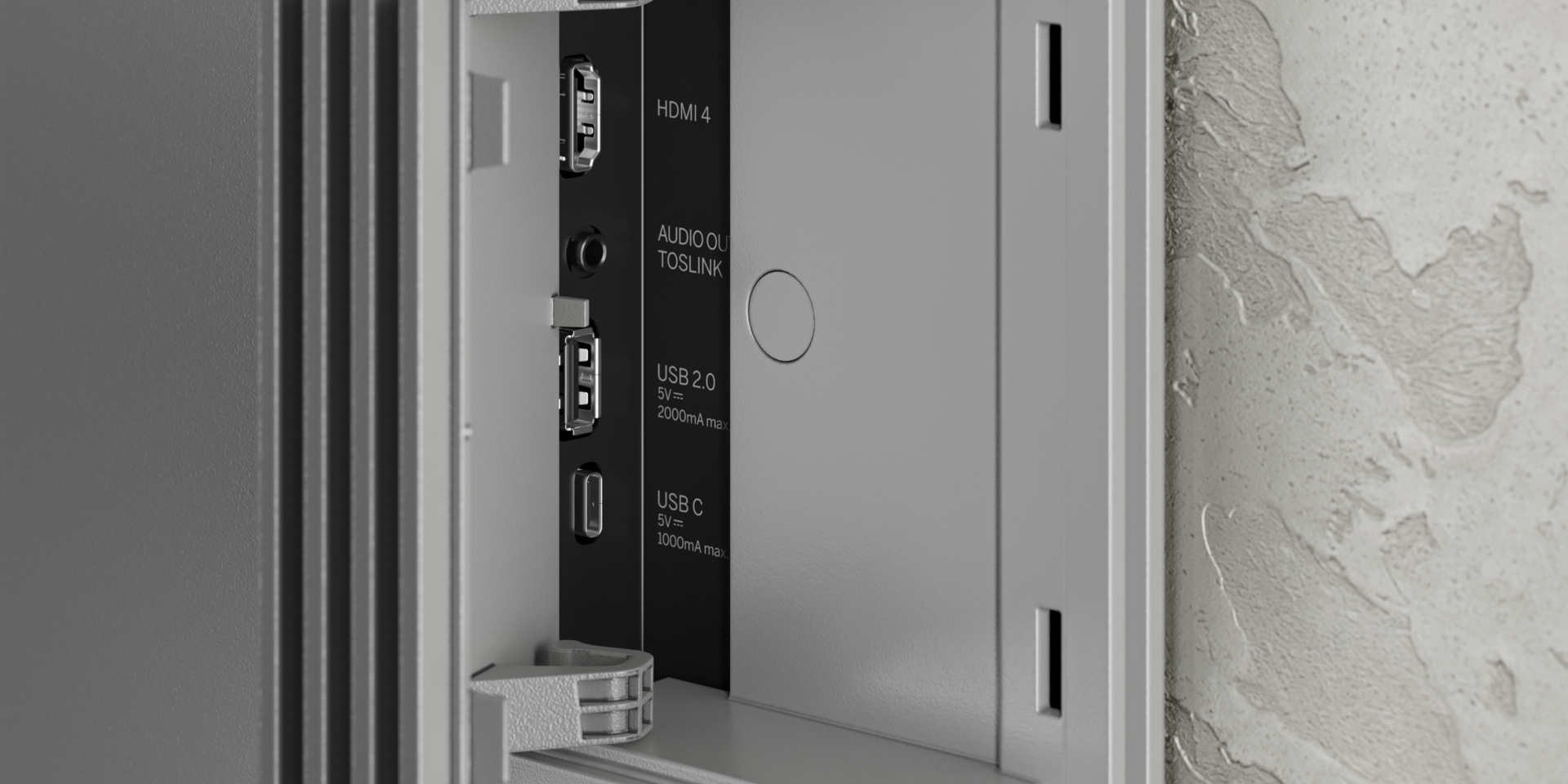 Questi nuovissimi pannelli W-OLED di ultima generazione con tecnologia MLA - Micro Lens Array e META con risoluzione Ultra HD offrono la massima luminosità e prestazioni cinematografiche senza precedenti. La pila di pannelli OLED è stata progettata, disegnata e realizzata su misura da Loewe a Kronach, con una formatura posteriore in alluminio, una cornice in alluminio spazzolato e una copertura posteriore in vero cemento.