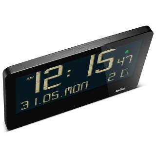 Orologio da parete digitale Braun con temperatura interna, data, giorno della settimana, ampio display LCD invertito, impostazione rapida, allarme acustico, colore nero, modello BC14B.