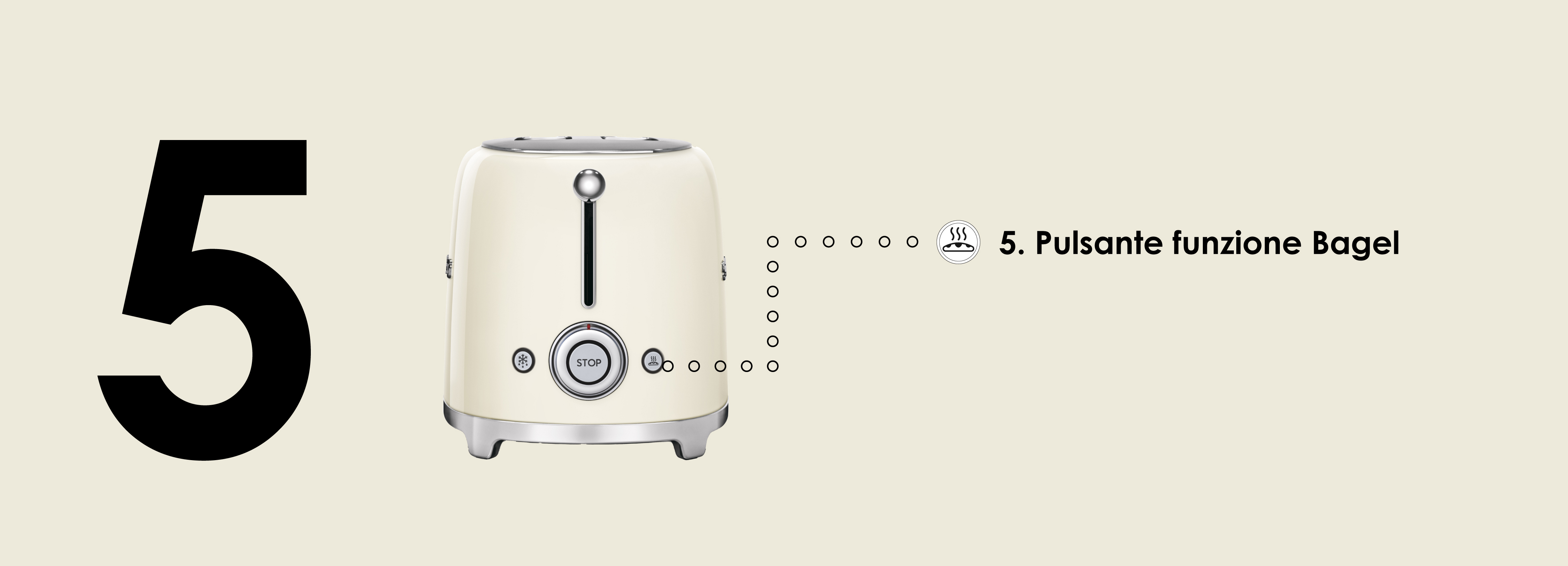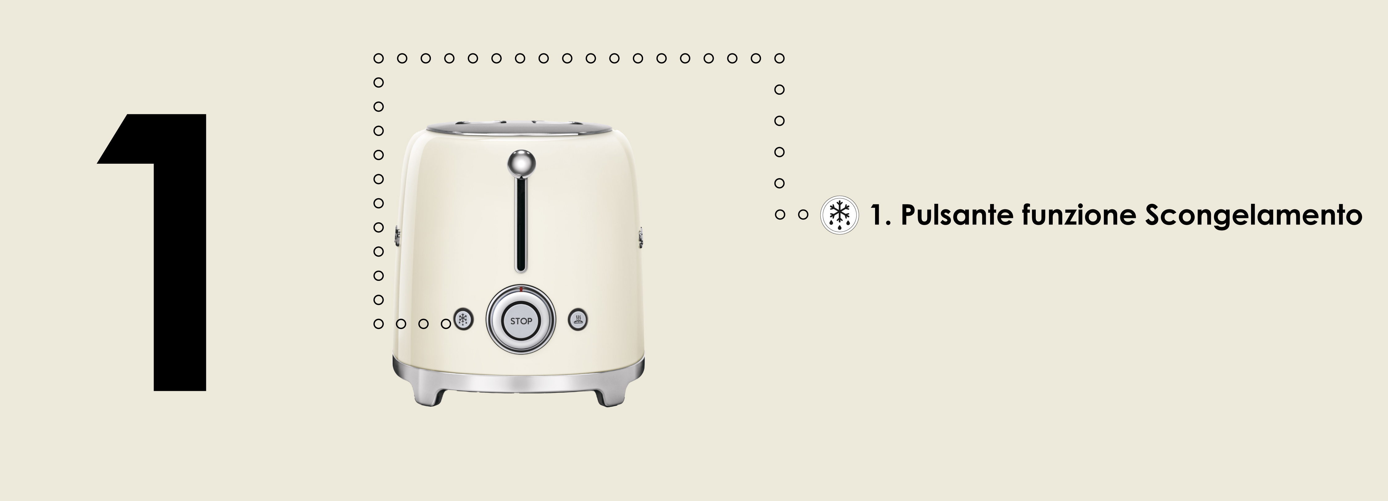 Smeg TSF01CREU Panna Lucido 50's Style Tostapane 2x2 Fette:2 Scomparti:2 AutoEspulsione Cassettino