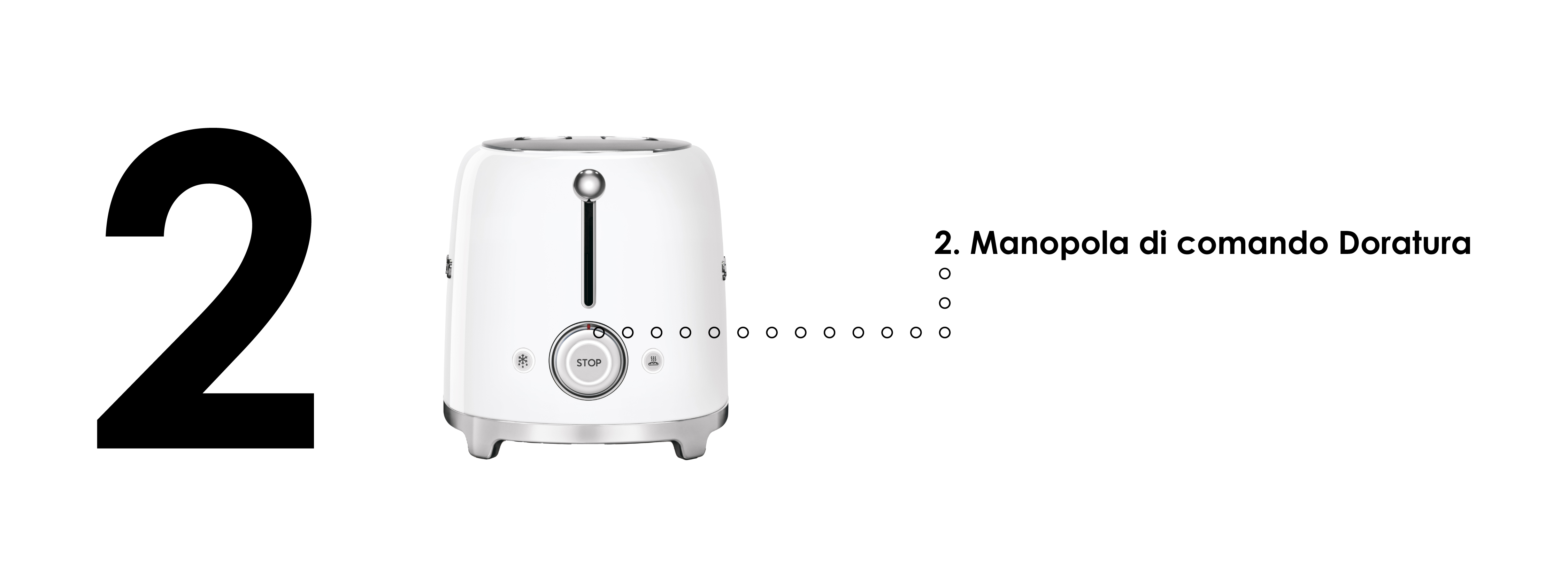 Tostapane 2 Fette Design Anni 50, Corpo in acciaio verniciato, Base cromata lucida, Pomello leva attivazione ciclo in acciaio inox, Manopola comandi cromata retroilluminata, Nr. 2 ampi scomparti (36mm cad.), Centratura automatica delle fette, Espulsione automatica, Cassetto raccoglibriciole, Potenza 950W, 6 livelli di doratura, 3 programmi: Riscaldamento, scongelamento, bagel, Dimensioni (AxLxP) 198 x 310 (325 con leva) x 195 mm, Peso 2,4 Kg