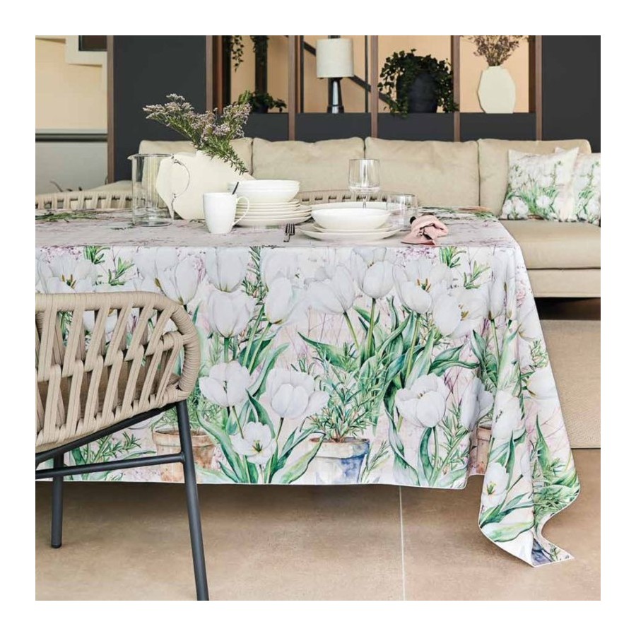 Tovaglia Antimacchia Stampata. No stiro. 100% Poliestere. Linea Korin