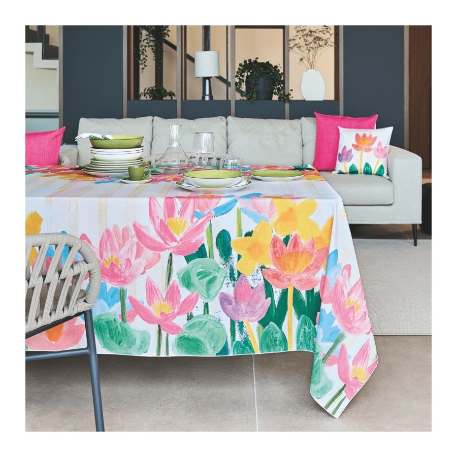 Tovaglia Antimacchia Stampata. No stiro. 100% Poliestere. Linea Korin