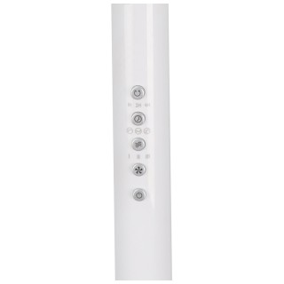 - Ventilatore a piantana dal design minimal ed elegante, di colore bianco puro